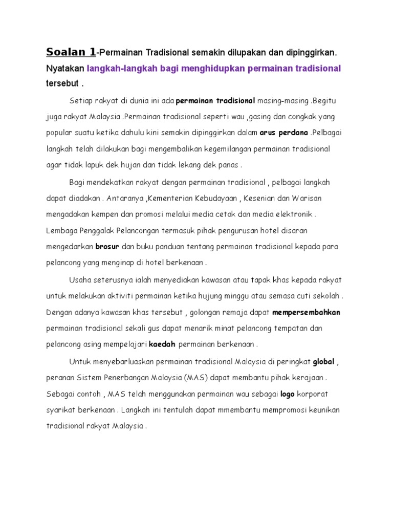 Contoh Karangan Sebab Sebab Permainan Tradisional Semakin Dilupakan Peatix